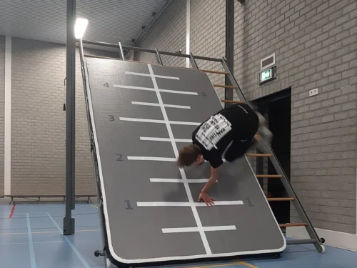 Deze Airtrack is breder waardoor het wat fijner en makkelijker is om veilig nieuwe tricks en vaardigheden te oefenen.